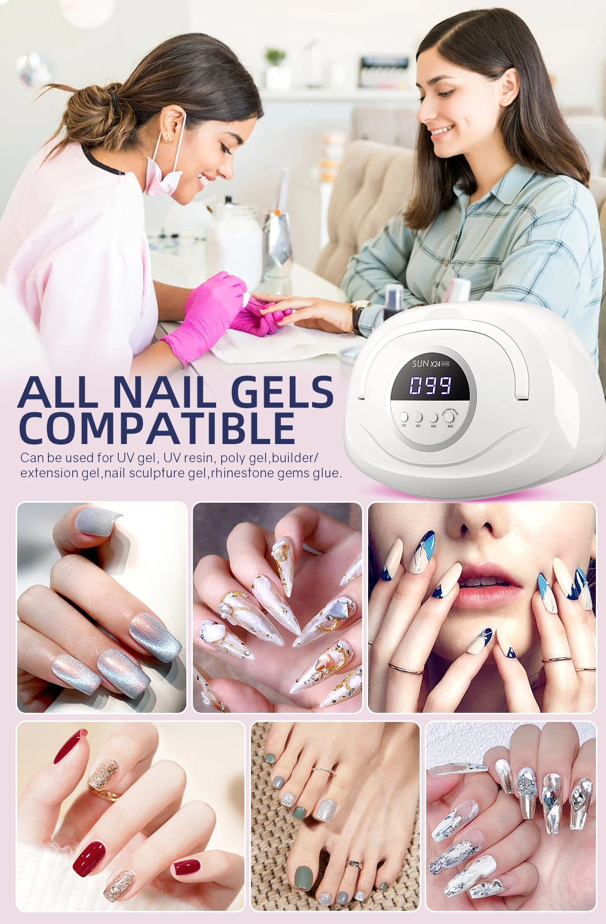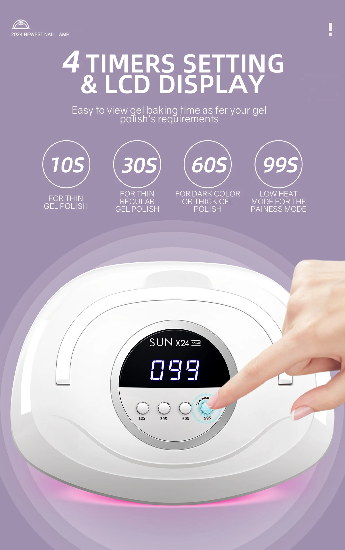 【84 PCS Light Beads】 This uv nail lamp with 84pcs double light source beads, can dry the whole hand or foot evenly including the thumb at once.Nail dryer with LCD digital screen, real-time display drying seconds.