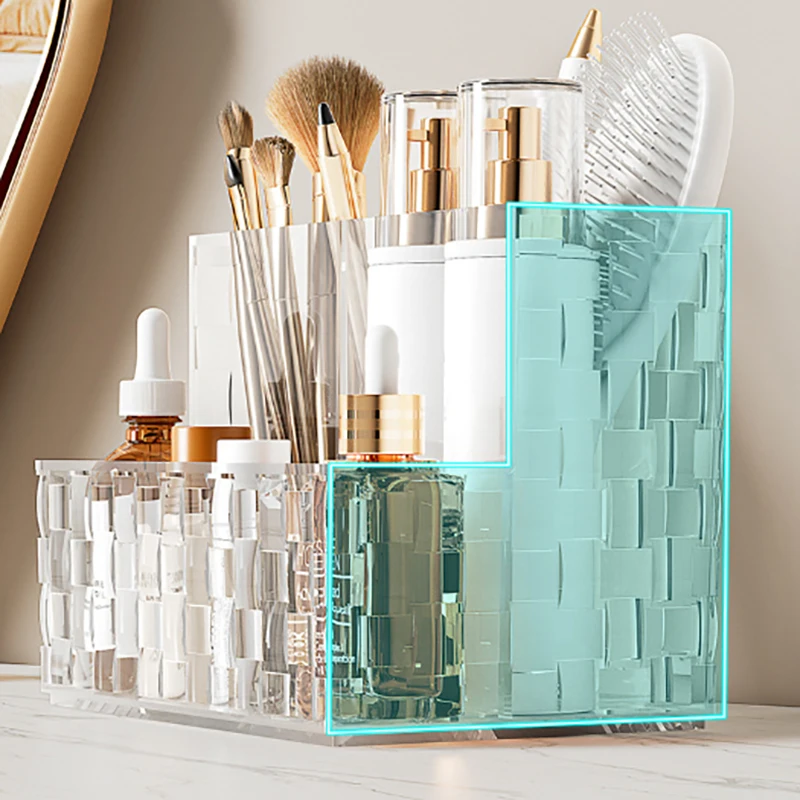 Transparent Desktop Storage Box Light Luxury Multi-grid Makeup Organizer Box Large Capacity Cosmetics Box Remote Control Holder